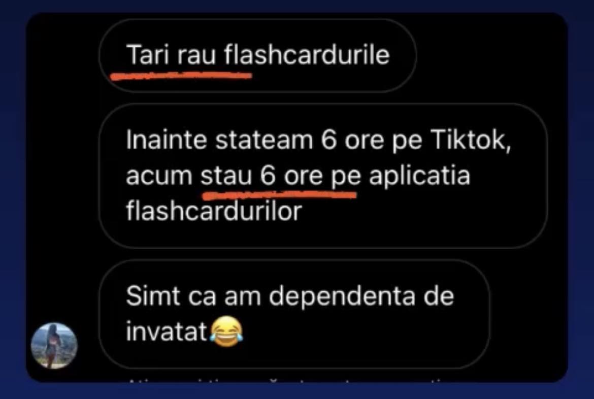 Flashcard-urile sunt realizate intr-un format special, in aplicatia Anki, care este foarte Performanta.